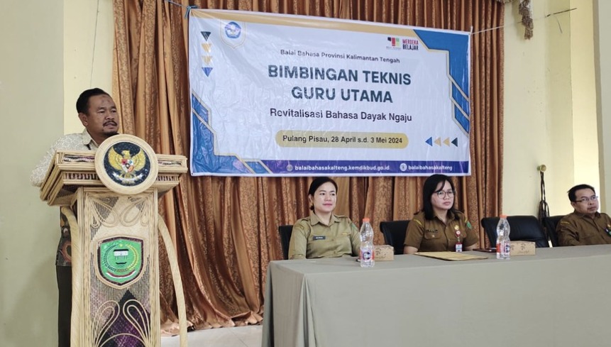 Balai Bahasa Provinsi Kalimantan Tengah melaksanakan kegiatan Bimbingan Teknis Guru Utama Revitalisasi Bahasa Daerah Dayak Ngaju di Kabupaten Pulang Pisau. Kegiatan dilaksanakan di Aula Dinas Pendidikan Kab. Pulang Pisau pada tanggal 29 April s.d. 3 Mei. Kegiatan dihadiri oleh Kepala Balai Bahasa Provinsi Kalimantan Tengah, Drs. Muhammad Muis, M.Hum. Kegiatan ini dibuka secara langsung oleh Kepala Dinas Pendidikan Kab. Pulang Pisau, Sri Putri Pratiwi, S.STP., M.PA. Sebanyak 20 orang guru utama dari Pulang Pisau mendapatkan berbagai materi dari para narasumber dan akan mengimbaskan kepada guru kelas dan juga para siswa.